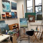 Possibly one of my last jackdaw paintings. I feel that I may be coming to the end of this series now. There a couple more on the go that I will fiddle around with to see what happens. But what will carry on is the textural and layered style of painting. I am enjoying that. UPDATE November 2018. I have now turned this picture into a square picture! I was not happy with the left hand side and came to the conclusion that it was unnecessary – so off it came! Prints are still available of the original vista though.