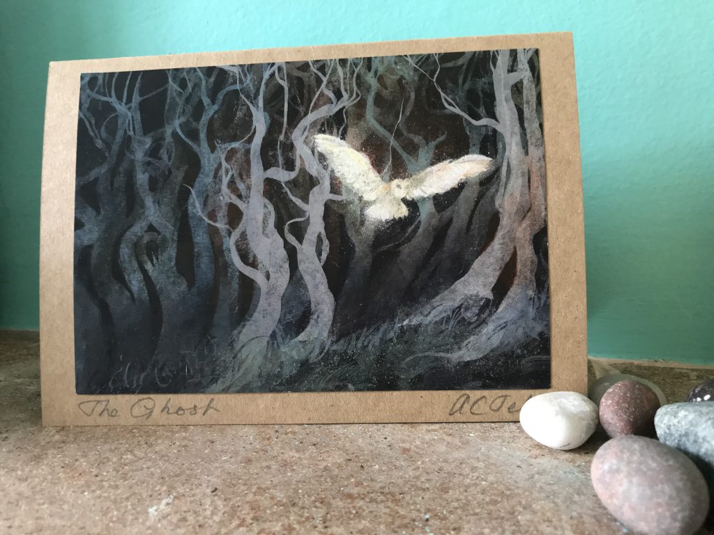 Inspired by a barn owl suddenly swooping, sliently and softly, whilst travelling ‘over the tops’ from Colne. |